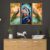 Vibrant floral canvas with a golden frame for brightening up your living room.