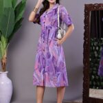 Women’s Purple Abstract Print Cotton Shirt Dress